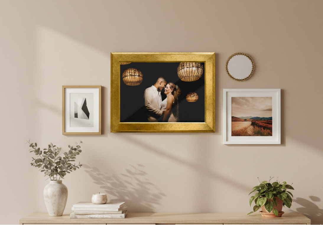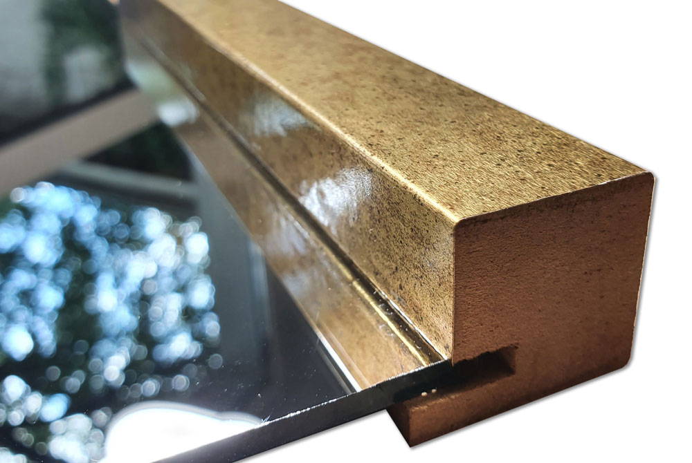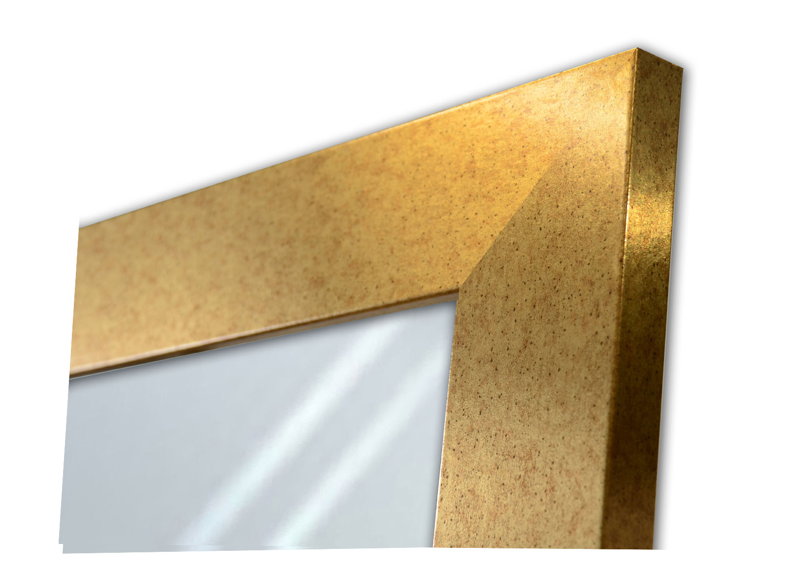 Dekor w kolorze nasyconego złota, którego powierzchnię pokrywa gęsty wzór ciemniejszych, nieregularnych plamek i „przetarć” imitujących naturalne starzenie się metalu. Całość tworzy efekt wizualnej patyny, gdzie błyszcząca baza miesza się z ciemniejszymi tonami, nadając ramie głębię i antyczny charakter bez wprowadzania fizycznej tekstury. Dzięki takiemu zestawieniu kolorów, rama zyskuje szlachetny wygląd starego złota, które nie jest jednolite i krzykliwe, lecz ma swoją unikalną historię i stonowany połysk. To idealny wybór do wnętrz klasycznych oraz stylowych gabinetów, gdzie oprawa ma podkreślać prestiż zawartości w sposób nienachalny i dojrzały.